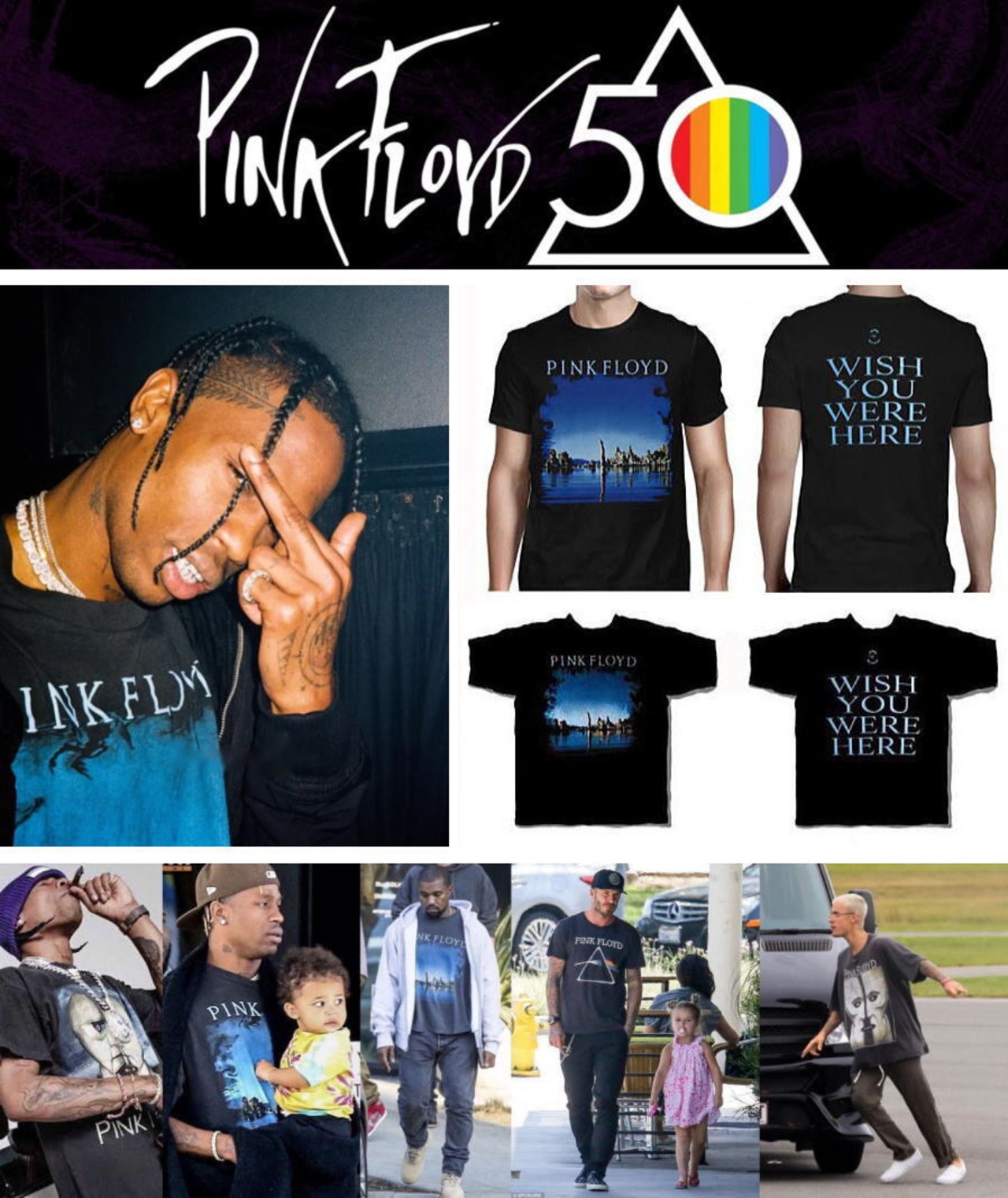 【送料無料】トラビススコット カニエウエスト着用 PINK FLOYD ピンクフロイドライセンス Tシャツ