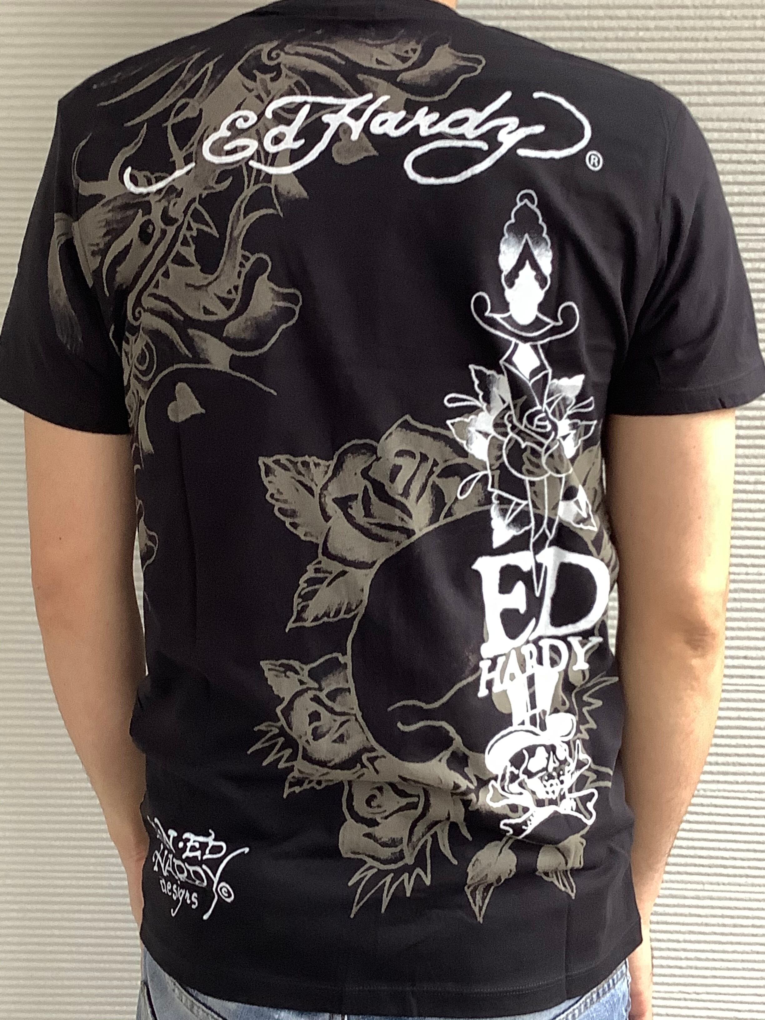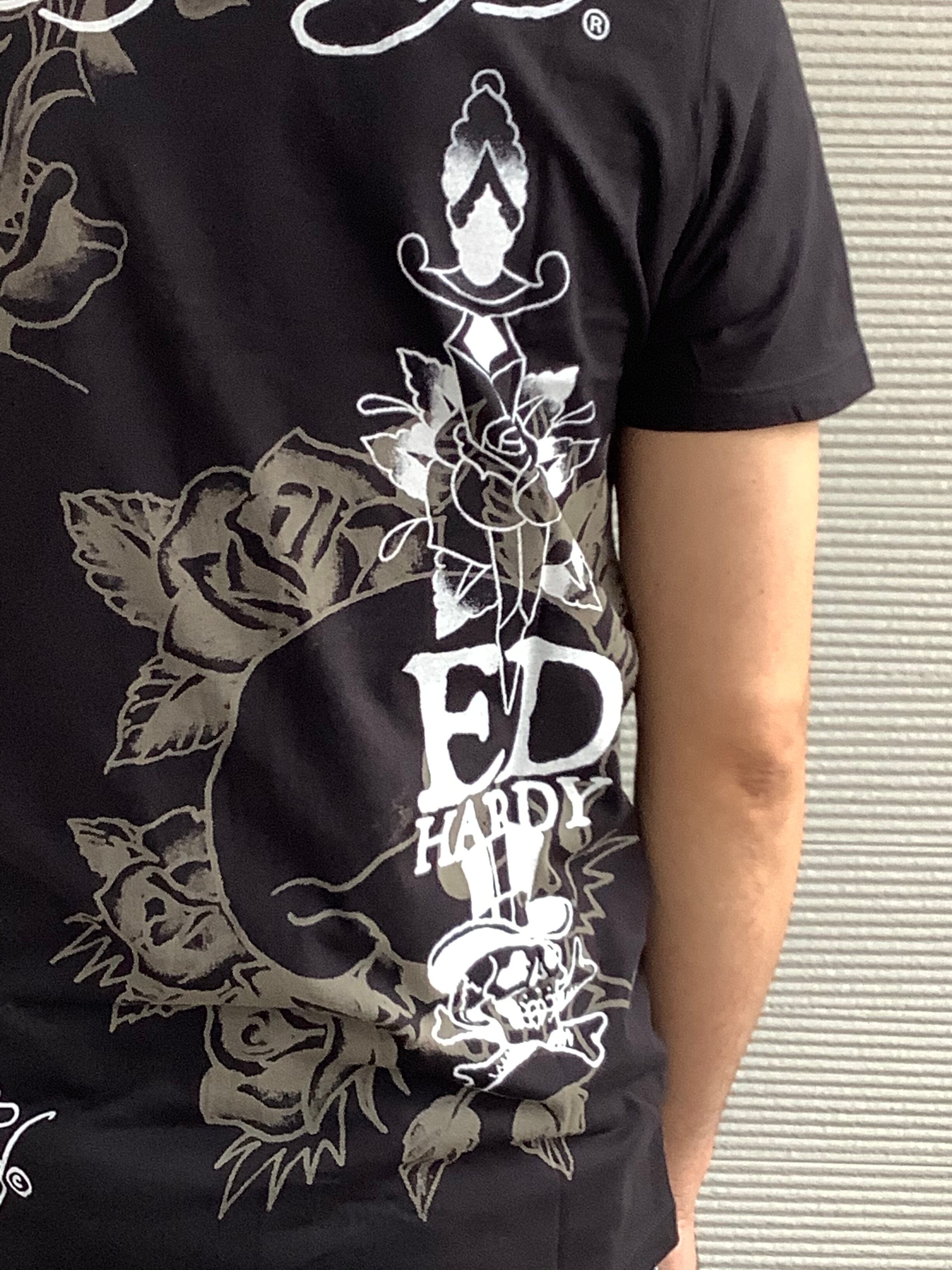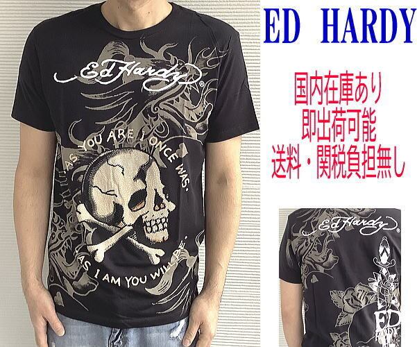 【送料無料】ED HARDY(エドハーディー)SKULL スカル ビーズ タトゥープリントデザインTシャツ ブラックL