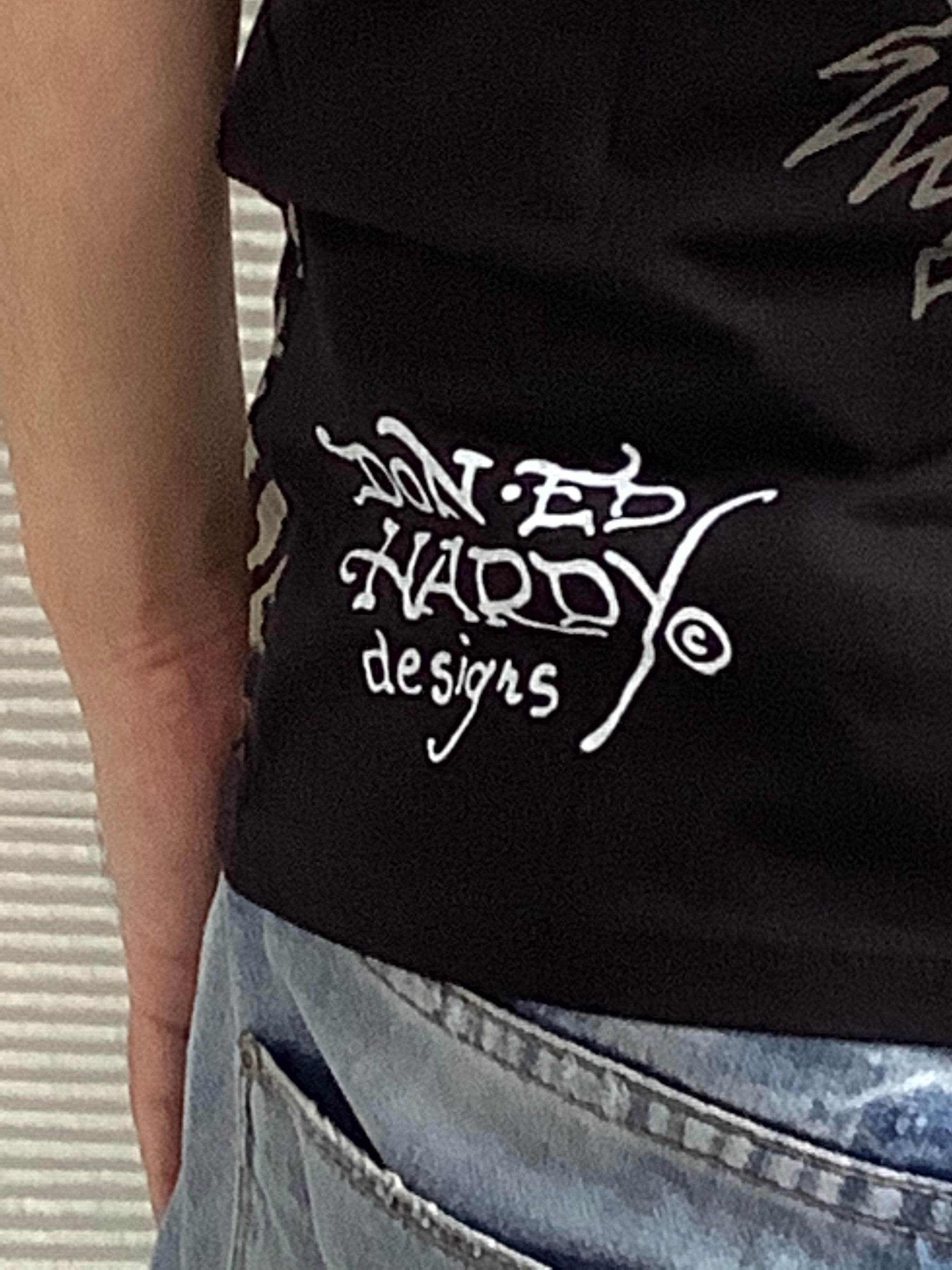 ED HARDY エドハーディー 人気のスカルデザインにクリスタル ビーズが施されたゴージャスなデザインが特徴的です。またシックなブラックボディーにタトゥープリントがオシャレです。