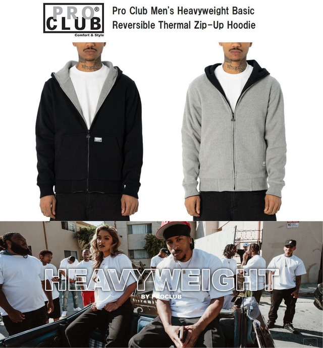 【送料無料】PRO CLUB プロクラブ Heavyweight Basic Reversible Thermal Zip-Up Hoodie 46PC0301 リバーシブルパーカー